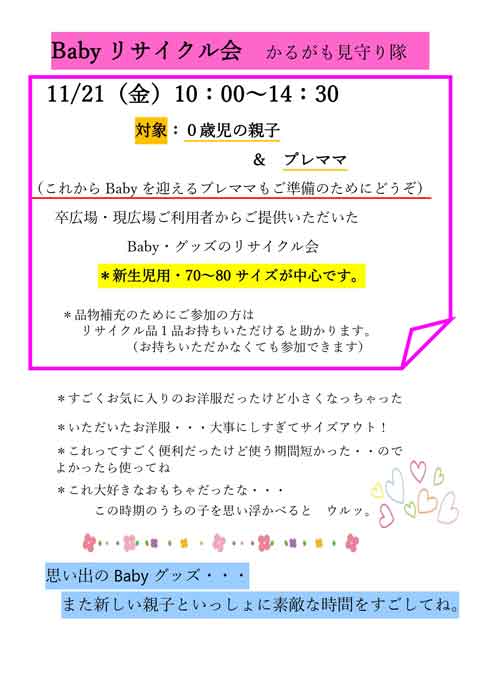 赤ちゃんと一緒に 気軽に集い 話し合い 遊ぶ!